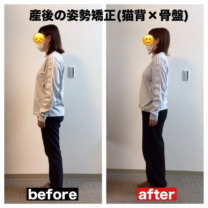 ※画像は姿勢矯正の途中出産後の育児で肩こりと腰痛が出るようになりご来院。